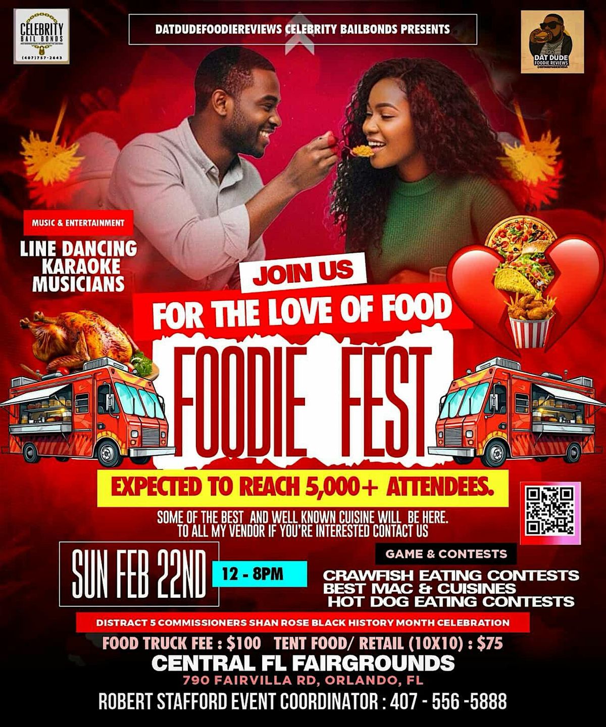Let's celebrate our love for food together at this tasty event! KIDS 10 under FREE ENTRY!! Vendors [email protected] or Text 407-556-5888