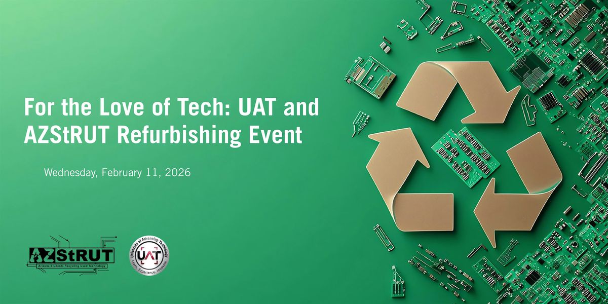 Join UAT and AZStRUT for For the Love of Tech — a hands-on refurbishing event dedicated to giving technology a second life! Students, staff, and volunteers will collaborate with AZStRUT (Arizona Students Recycling Used Technology) to repair and prepare donated computers for redistribution to schools and nonprofits across Arizona. Along the way, we will also learn learn how to take a a computer, the components involved and put them back together,