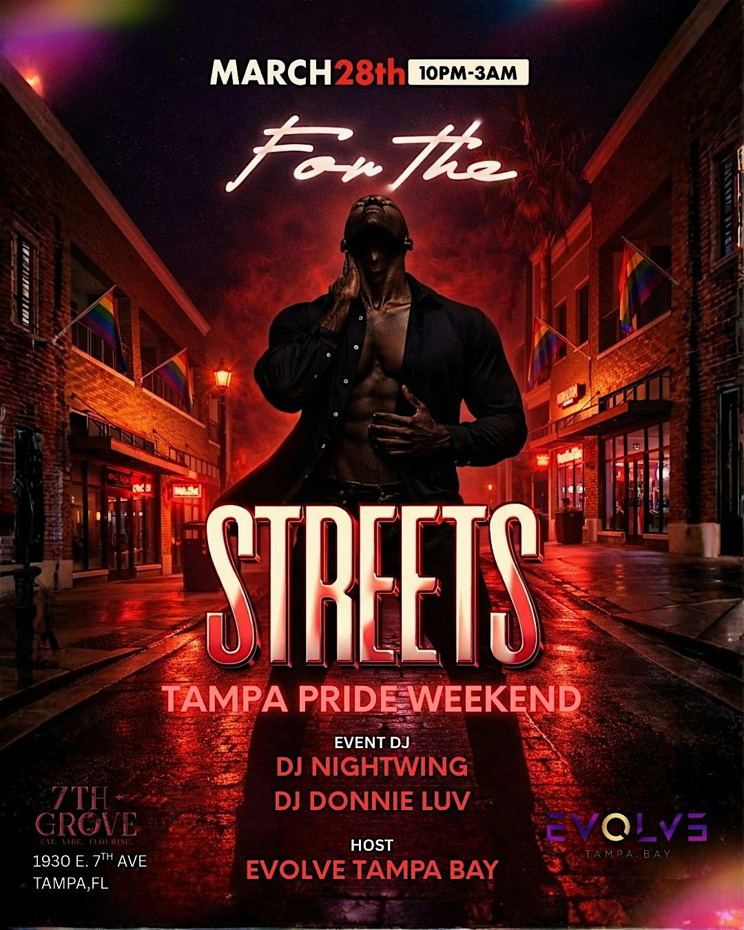 Set in the heart of Ybor City, we’re taking over the legendary streets at 7th & Grove (1930 E. 7th Ave., Tampa, FL) for a night where Pride, nightlife, and queer culture collide.