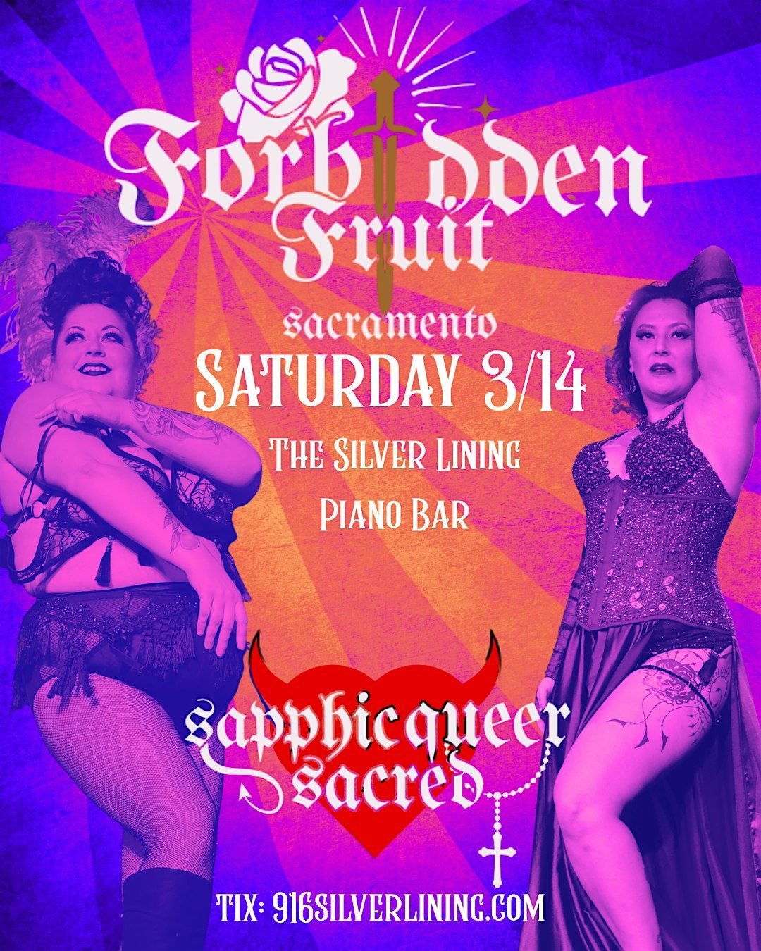 Forbidden Fruit Burlesque: is a sultry night of live burlesque and intimate entertainment . Perfect for couples, besties, or bold solo babes.