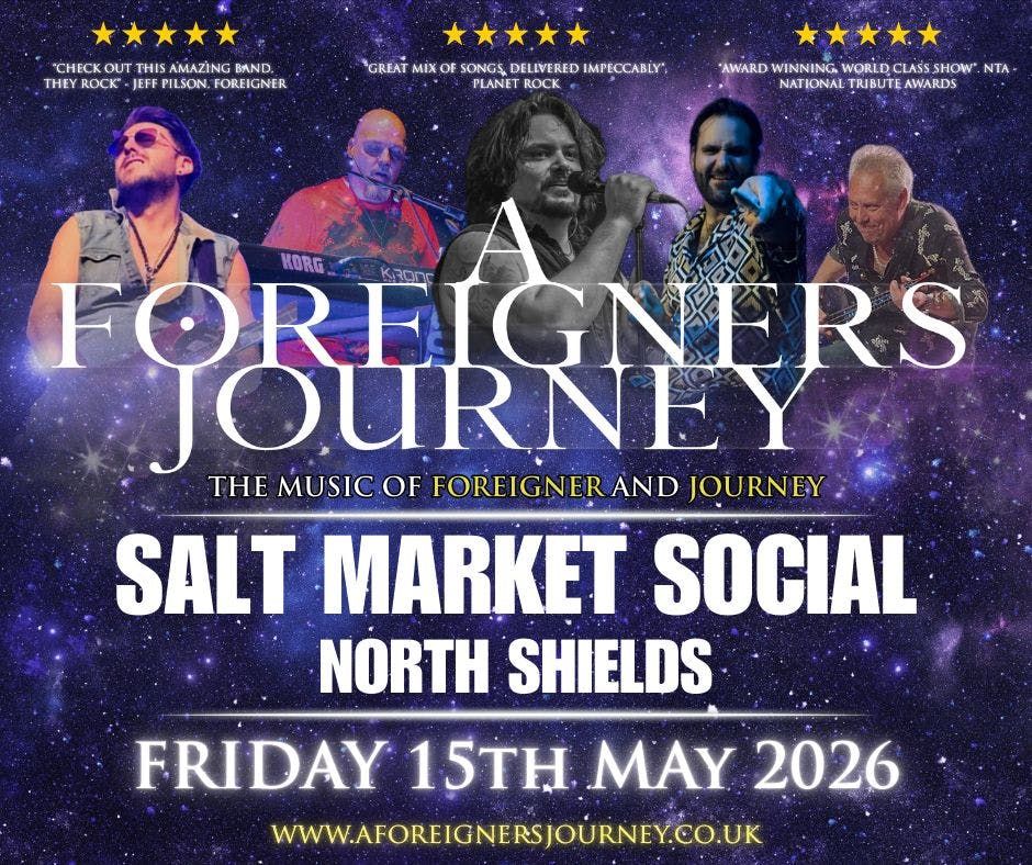 A Foreigners Journey – The Ultimate Foreigner & Journey TributeExperience the arena-sized sound of two of rock’s greatest bands in one electrifying show. A Foreigners Journey, winners of the UK’s Number 1 Tribute to Foreigner and Number 1 Tribute to Journey at the National Tribute Music Awards, deliver a powerhouse performance packed with legendary hits.