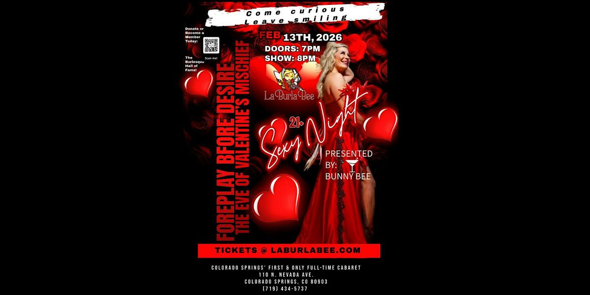On the eve of Valentine’s Day, rules loosen, hearts race, and desire takes the lead. Welcome to the foreplay — an unforgettable evening of desire, mischief, and celebration on the eve of Valentine’s Day. Get ready to be entertained, delighted, and left smiling. This is La Burla Bee’s signature night where passion meets playful, and every moment sizzles. Let the show begin!
