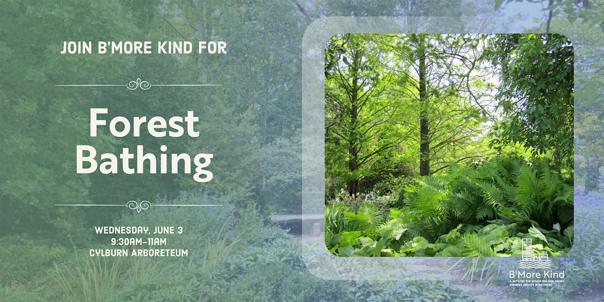 Join B’More Kind at Cylburn Arboretum for our first-ever forest bathing experience! Led by Minda Heyman of Collective Force Coaching, she’ll help us get out of our heads and into our bodies. Nature provides a natural shift in perspective and can help us unlock new possibilities.