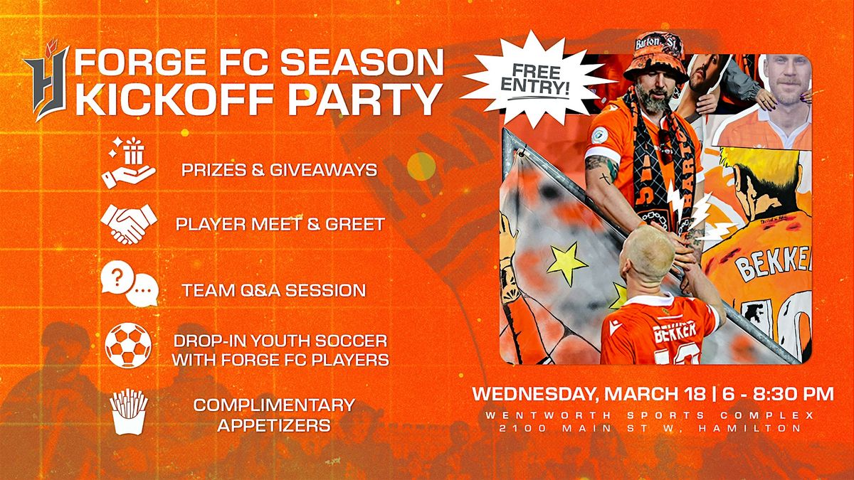 Get ready to kick off the season with Forge FC! Join us for a fun-filled in-person event where fans can vibe, meet the team, and celebrate the start of an epic season.