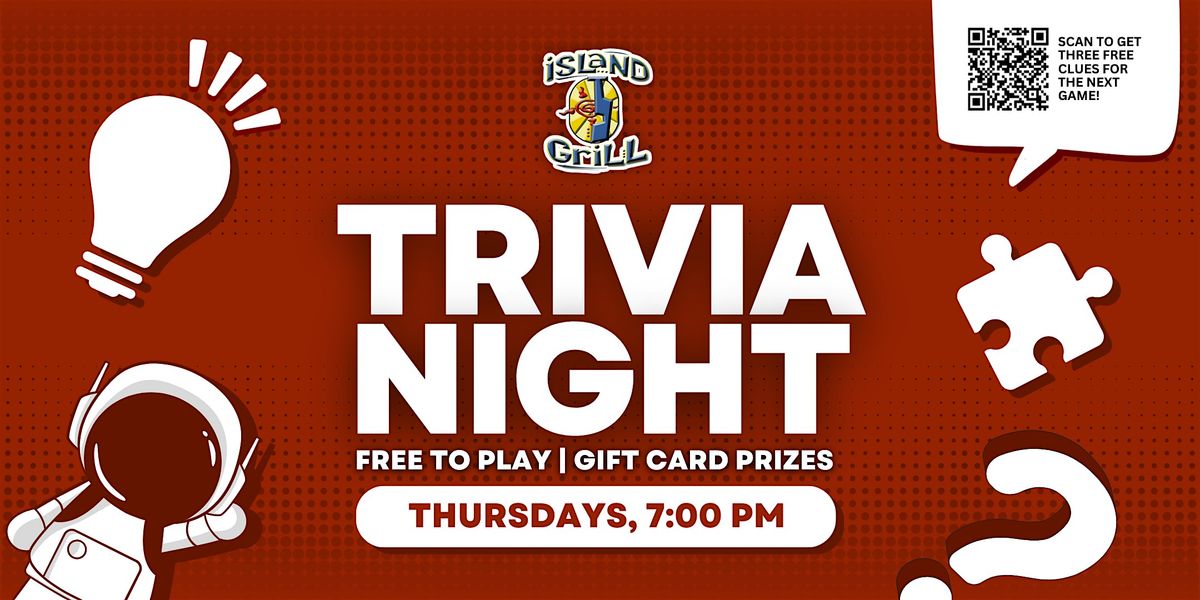 Join us for free live trivia every Thursday at 7pm at Island Grill in Fort Collins! Free to play, and top teams win gift card prizes!