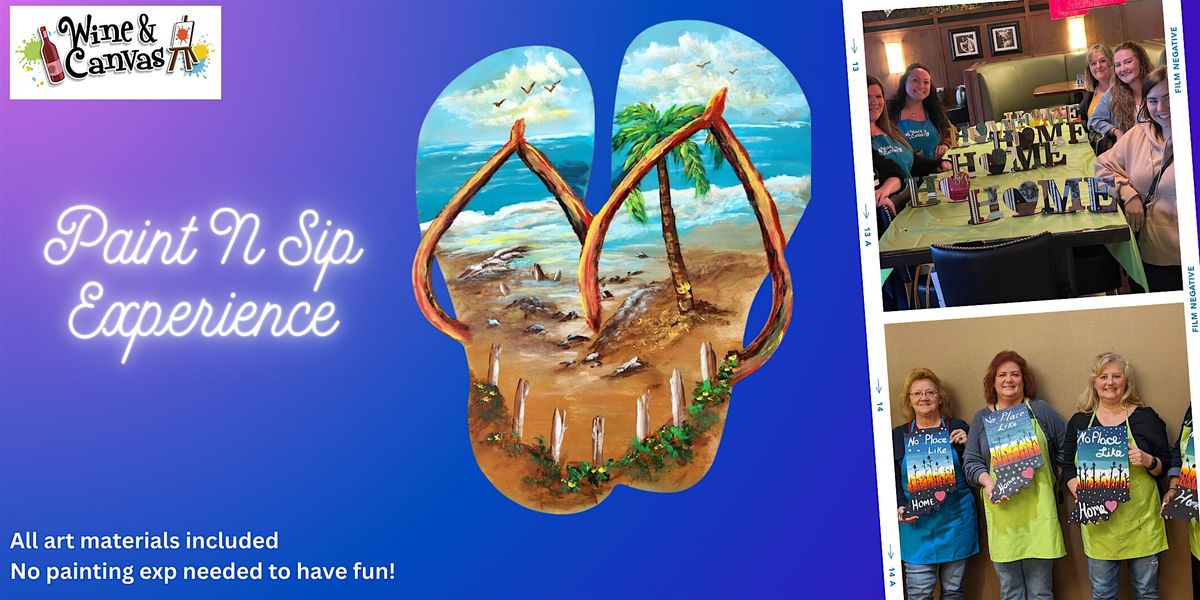 🎨Join us for a Fort Myers Wine and Paint event as we paint “Wood Sign Flip Flops,” a large flip flop wood cutout and we'll paint a beach scene. You are welcome to add your elements to your beach painting as well.