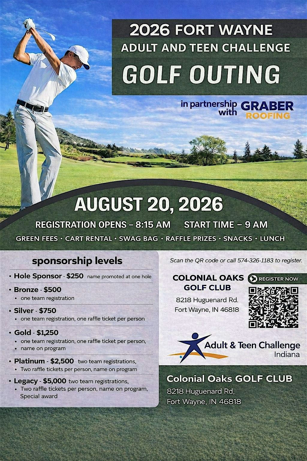 Get ready to tee off for a great cause! Join us in person for a fun-filled day of golf, camaraderie, and community spirit at the Fort Wayne Adult & Teen Challenge Golf Outing. Adult & Teen Challenge is a residential program that helps adult men struggling with life controlling addictions find freedom! Whether you're a pro or just love the game, it's the perfect way to connect and enjoy some fresh air. Don’t miss out on this exciting event—grab your clubs and come swing by!