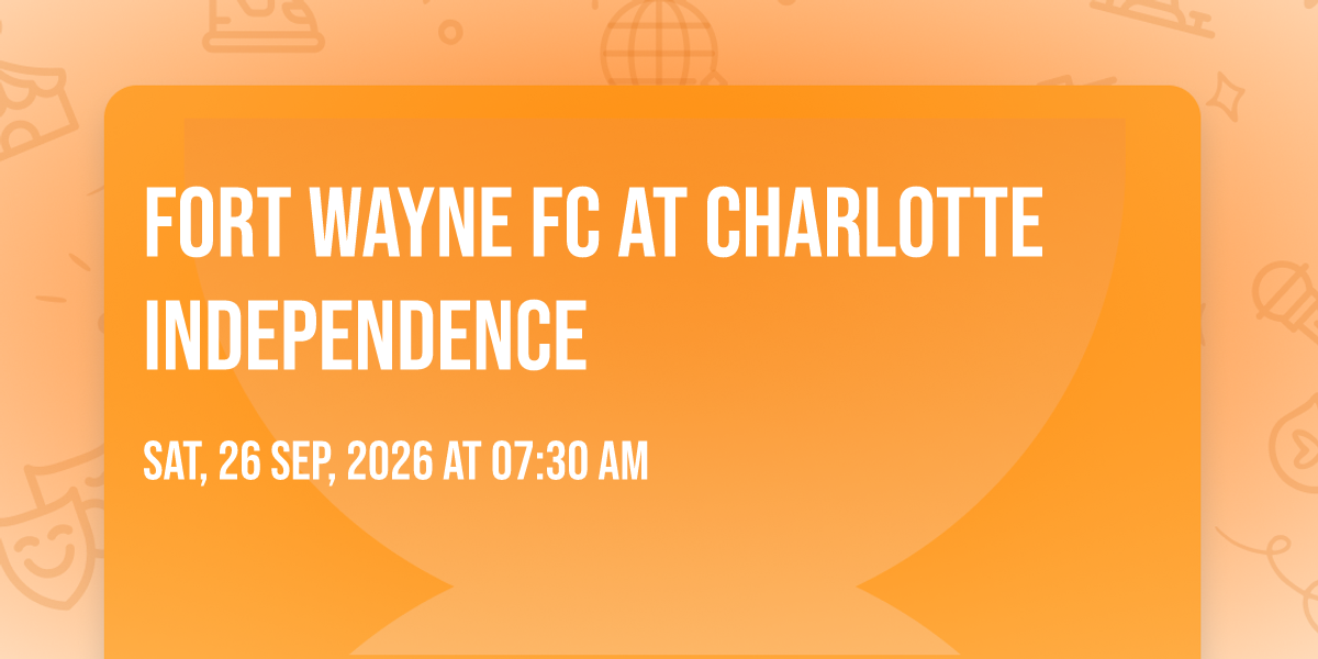 π Location: 35.2188, -80.8295β¨ Embark on an extraordinary journey at Fort Wayne FC at Charlotte Independence, where every moment promises to be unforgettable! π Imagine of transforming American Legion Memorial Stadium in the heart of Charlotte, NC into a realm of endless possibilities. π Join us on September 26th, 2026 at 11:00 PM for an experience that will challenge your imagination and exceed your expectations. π― This carefully curated event combines the finest elements of entertainment, innovation, and community spirit. Whether you're an adventure seeker, culture enthusiast, or someone looking for unique experiences, this event offers something special for everyone. π Don't miss this chance to be part of something extraordinary!