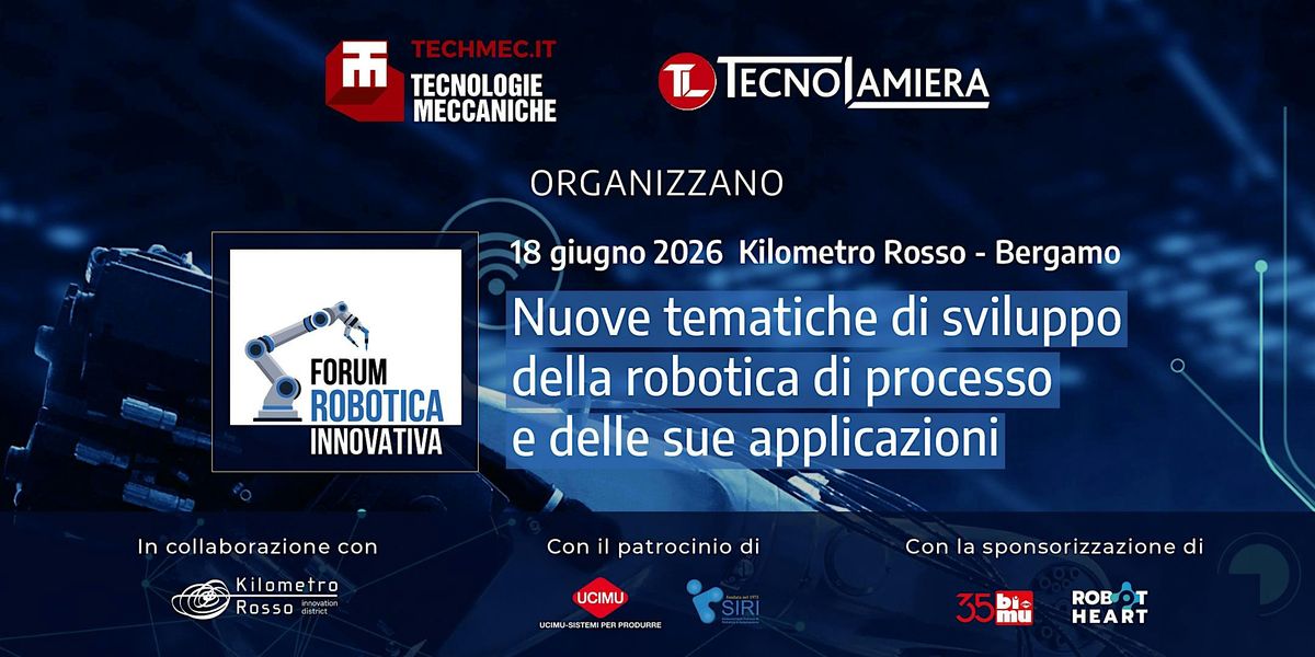 Forum Robotica Innovativa, organizzato da Tecnologie Meccaniche e TecnoLamiera e in programma il 18 giugno 2026 al Kilometro Rosso di Bergamo, è una giornata dedicata all’aggiornamento, al dibattito e al confronto sulle evoluzioni della robotica “tradizionale”, sulle nuove forme di robotica e sulle nuove applicazioni che stanno entrando sempre più diffusamente anche nelle PMI del mondo manifatturiero.