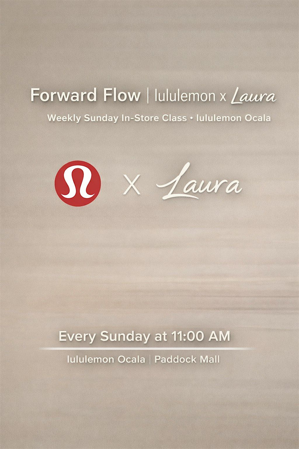 Join us every Sunday at the lululemon Ocala store for Forward Flow, a weekly in-store movement class led by Laura. Classes may range from yoga to Inferno Pilates, offering a dynamic and intentional way to move, reset, and connect.