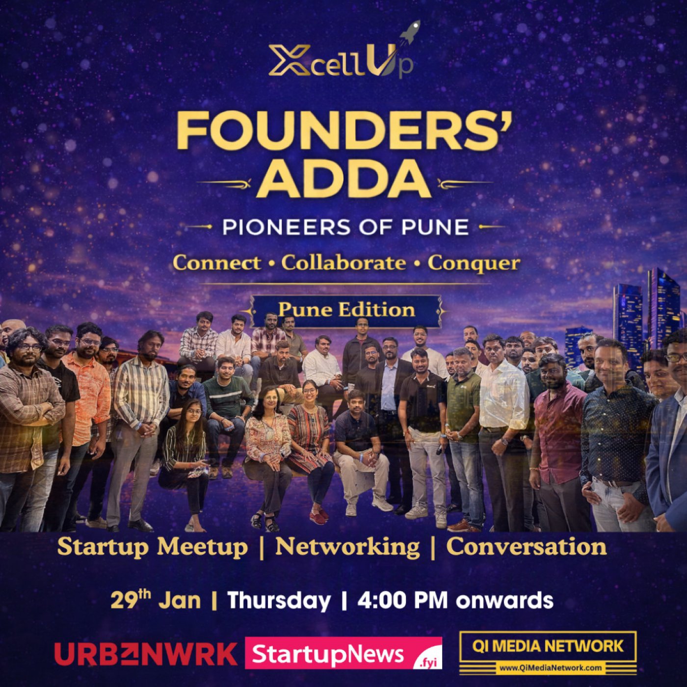 Taking place on 29th January at UrbanWrk CoWorking Space, Pune, this edition of Founders’ Adda is focused on real conversations around growth, execution, and scaling startups in today’s fast-changing environment.