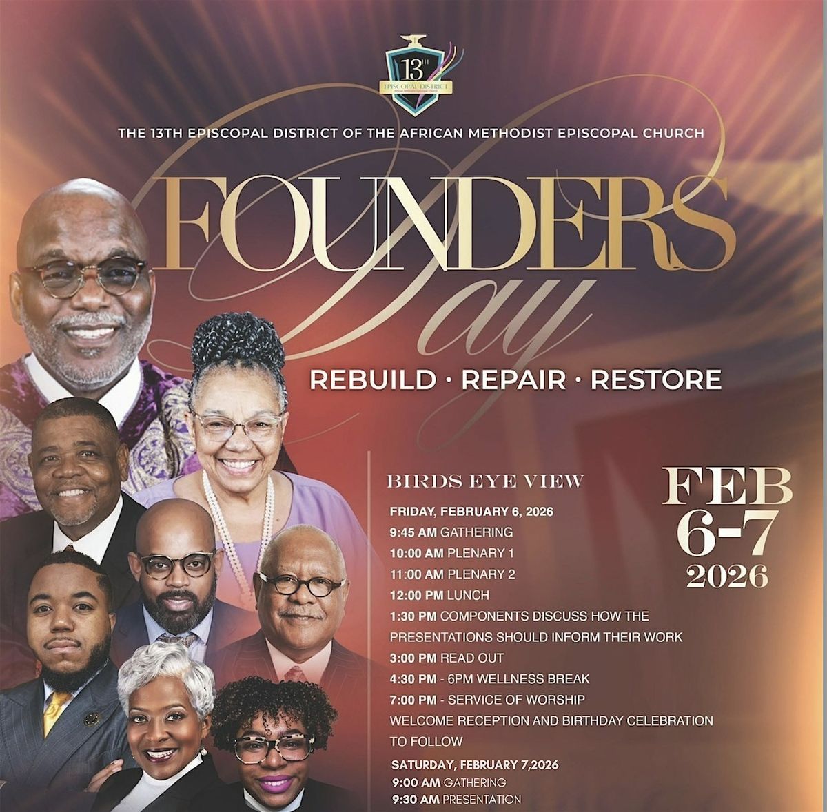 The 13th District of the African Methodist Episcopal Church invites you to Nashville for a transformative two-day Founder’s Day Celebration rooted in legacy, faith, and forward vision.