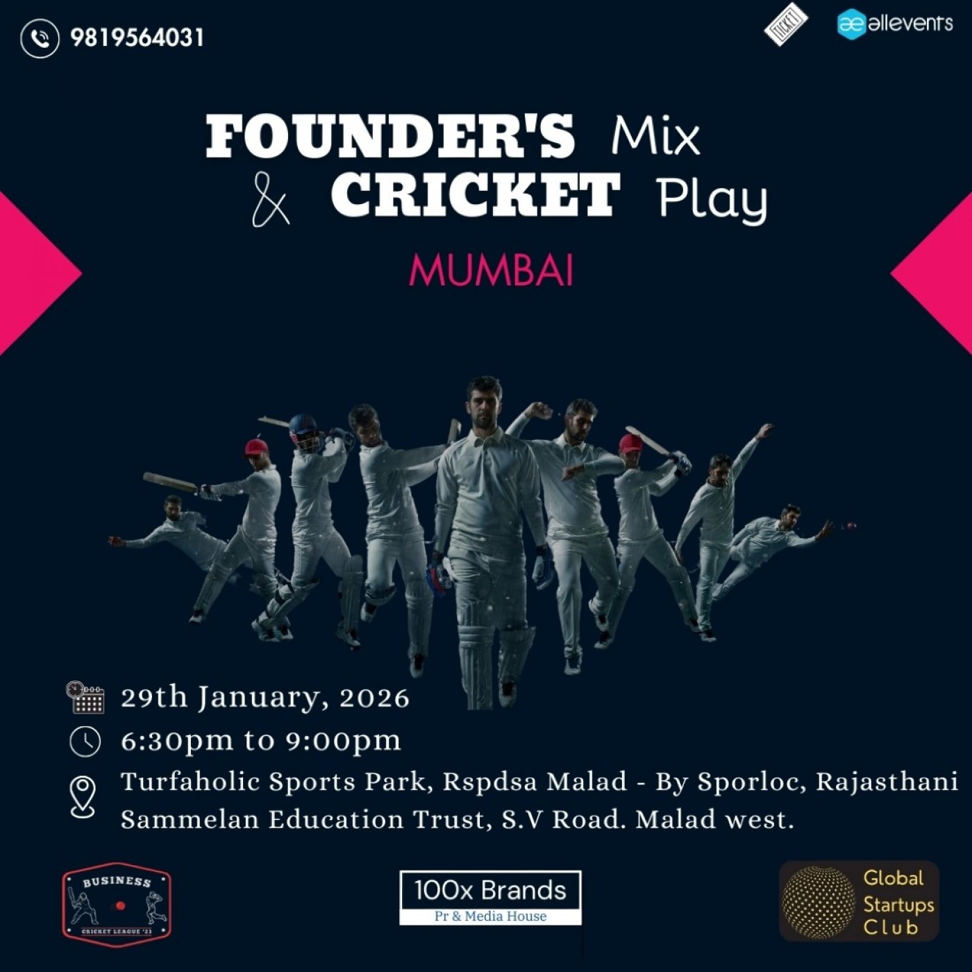 Join us for a day of sportsmanship and networking at the highly anticipated "Founder's Mix and Cricket Play" event! This exciting occasion brings together our community in a unique blend of fun networking and friendly cricket competition. Whether you're an avid cricket enthusiast or just looking for a fantastic time this event has something for everyone.