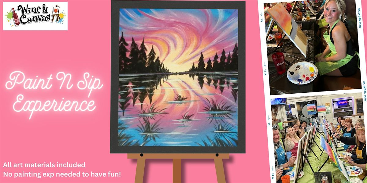 Step into a creative afternoon as we paint “Pastel Skies” at our Fountain Square Paint and Sip event. This masterpiece boasts a colorful sunrise framed by tall pine trees reflected on a lake; this piece is perfect for all levels!
