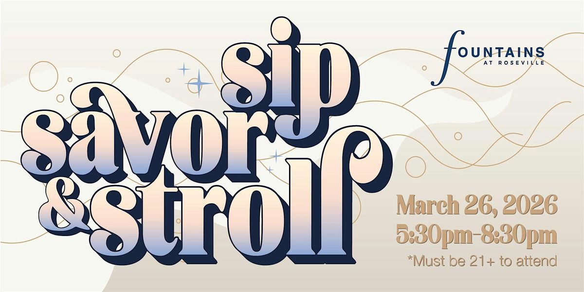 Join us for Sip, Savor & Stroll, a 21+ tasting experience featuring delicious small bites, handcrafted cocktails/mocktails, and sweet treats from some of Fountains at Roseville’s top dining spots. As you stroll from one destination to another, enjoy the soothing sounds of live acoustic guitar and jazz saxophone, creating the perfect ambiance for a night out with friends and loved ones.