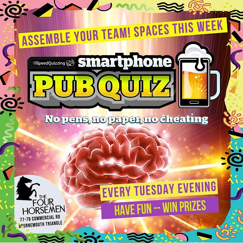 It’s the Smartphone speedquiz every Tuesday! All answers done on Smartphone or Tablet. Rounds vary each week and can include – General knowledge, music, Celeb, food & Drink, Medical, Science the Magic Roundabout and more. £2.00 per player, teams welcome, prizes include Cash & massive bars of chocolate. 01202 096087 to book your table or message us on facebook