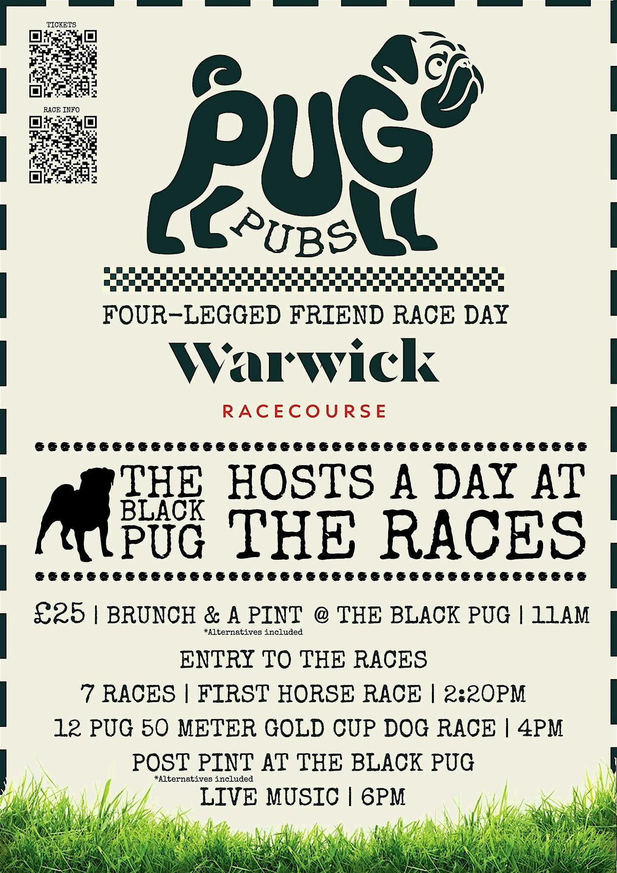 This is our first year we at Pub Pubs are proud to have teamed up with Warwick Races for the Four-legged freind race day with Pug Pubs at Warwick Races