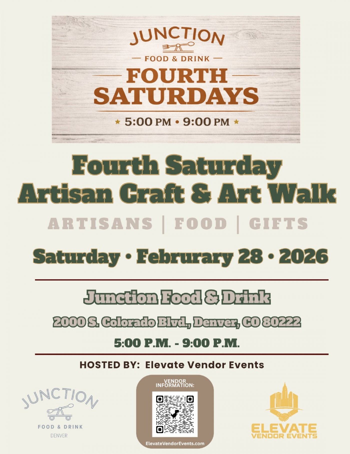 oin us for the Fourth Saturday Artisan Craft & Art Walk at Junction Food & Drink.