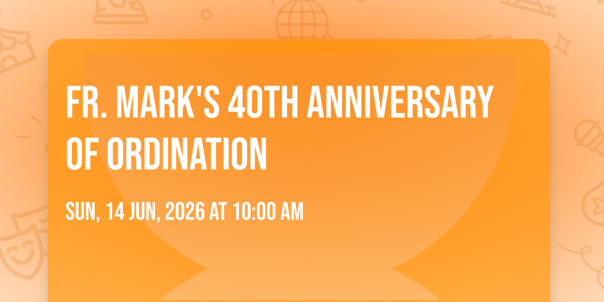 Join us on the occasion of Fr. Mark's 40th Jubilee! The day will begin with Mass at 10:00 a.m. at St. Ann, followed by a special brunch at 11:30 a.m. at The Center for Visual and Performing Arts in Munster. Brunch is $40 per person, and prepaid reservations are due no later than June 1. You may purchase online at bit.ly/frmark40 or by returning a response form to the Parish Office along with cash or a check written to All Souls Parish. Download your response form here: https://www.allsoulscatholicparish.org/wp-content/uploads/2026/04/Mark-40-Order-Form.pdfNote: There will only be ONE Mass at All Souls/St. Ann on Sunday, June 14 and it's not at either of the regularly scheduled Sunday Mass times.