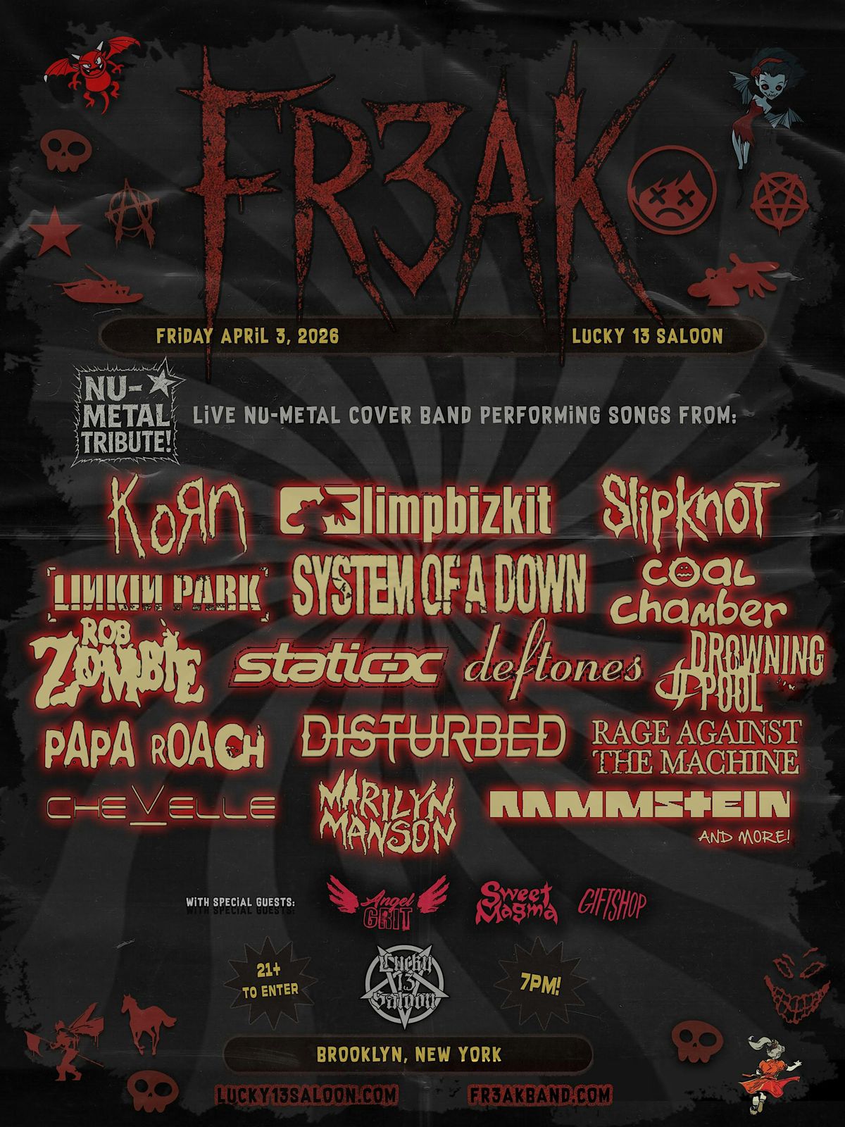 FR3AK NU-METAL TRIBUTE LIVE! @ LUCKY 13 SALOON