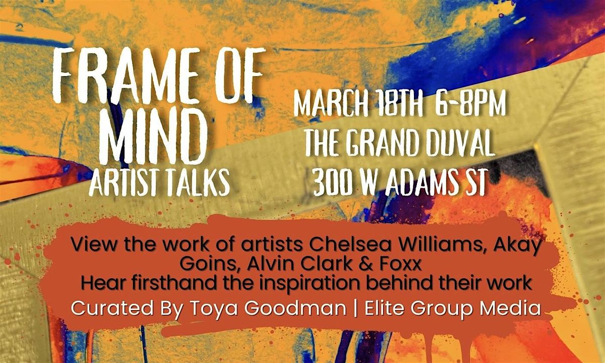 Come join us in person for Frame of Mind — an awesome chance to hear artists spill their stories, inspirations, and creative vibes right at the Grand Duval. Whether you're an art lover or just curious, this is your moment to dive deep into the minds behind the masterpieces. Don't miss out on these laid-back talks full of passion and insight!