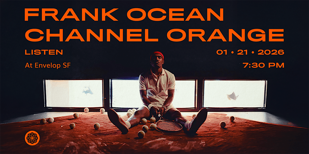 Experience Frank Ocean's Channel Orange on another level! 32 speakers of pristine immersive sound bathe you in the rich sonic vibes of this modern classic. Whether you're a Frank Ocean fan or have never experienced Envelop SF, this event will inspire you with a new appreciation for Frank's artistry and the power of music.