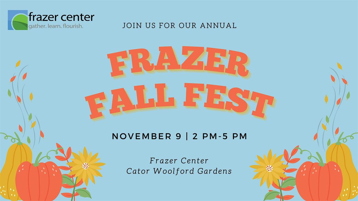 Don't miss Frazer Center's fall festival! Kiddos will enjoy fun, sensory play activities and crafts, including pumpkin decorating, face painting, gardening, story time, parachute play, and much more! We'll be offering delicious food and drink along with alcoholic beverages (with a $5 suggested donation) for parents. We're so excited to celebrate fall with our Frazer families and friends!