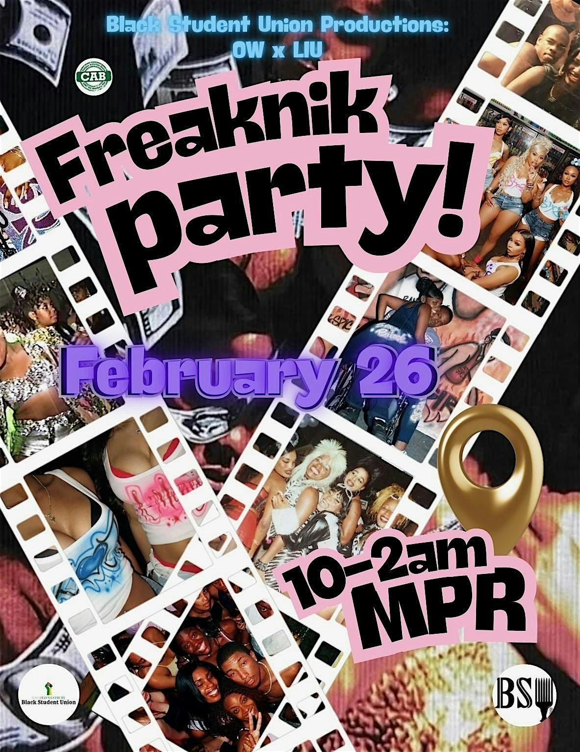Get ready for an epic in-person FREAKNIK PARTYY brought to you by BSU C.A.B and LIU BSU! It's all about good vibes, great music, and unforgettable moments. Don't miss out on this dope event where the energy is high and the fun never stops. Come through, link up with the crew, and let's make memories!
