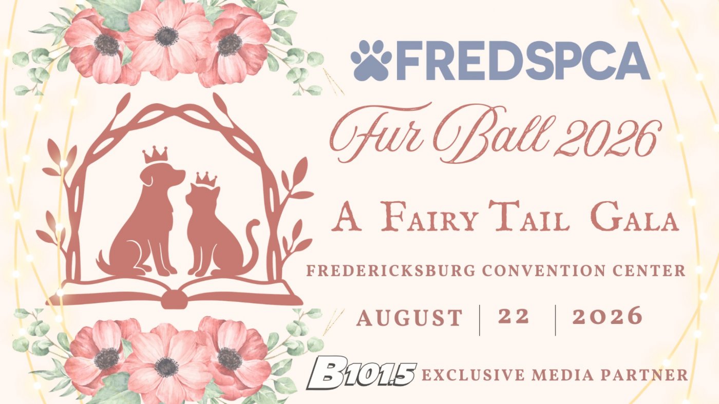 Once upon a time, kindness changed everything… Be part of the story at the Fred SPCA Fur Ball: A Fairy Tail Gala. On August 22, 2026, immerse yourself in an enchanted evening of elegance, wonder, and generosity. Beginning at 6:00 PM (VIP reception at 5:00 PM), this magical night at the Fredericksburg Convention Center supports lifesaving care for animals in need. Dress in your finest formal or fairy tale-inspired attire and help us turn hope into their happily ever after. B101.5 is an exclusive media partner.