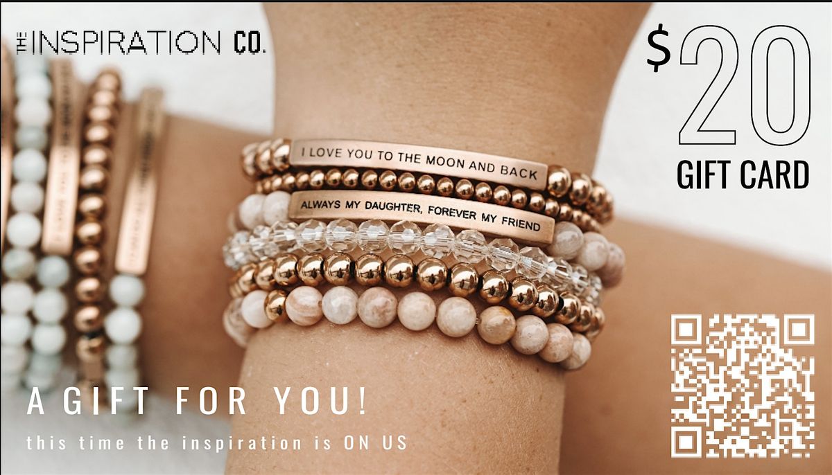 Welcome to our FREE $20 GIFT CARD event at The Inspiration Co.! Join us on Thursday's for a fun-filled day of surprises and rewards. Get ready to receive a $20 gift card just for showing up! Don't miss out on this exciting opportunity to treat yourself to something special. See you there!
