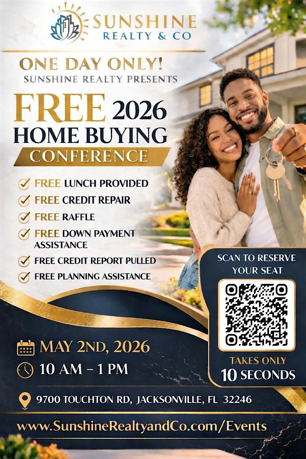Join Sunshine Realty & Co. for an exclusive, high-impact FREE Homebuyer Conference designed to take you from uncertain and overwhelmed… to clear, confident, and ready to move forward.
