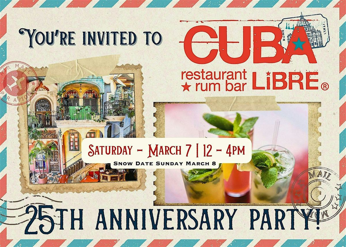 FREE 25th Anniversary Party at Cuba Libre Restaurant on Saturday, March 7 from 12pm-4pm!