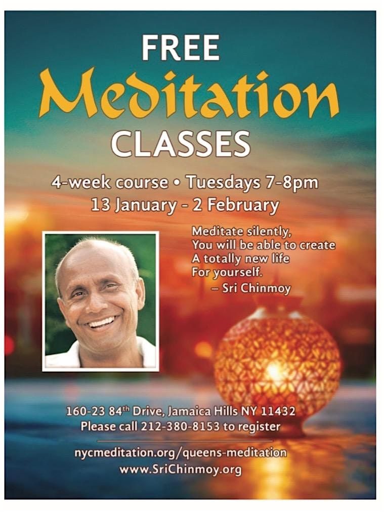 Join us for a Free 4-Week Meditation Workshop in Jamaica Hills, Queens! This in-person event will be held at 160-23 84th Drive (1st floor). Whether you're new to meditation or a seasoned practitioner, this workshop is open to all levels. The course is based on the teachings of spiritual teacher Sri Chinmoy. Reserve your spot today!