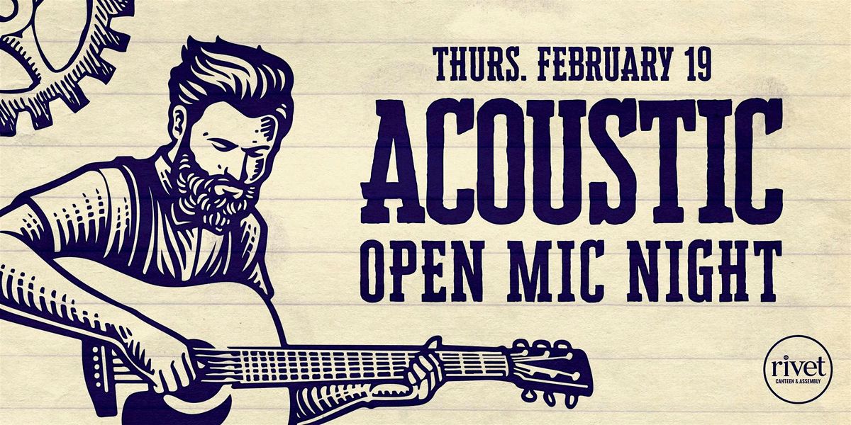 Join us for a FREE acoustic open mic night at Rivet: Canteen & Assembly on Thursday, February 19th!