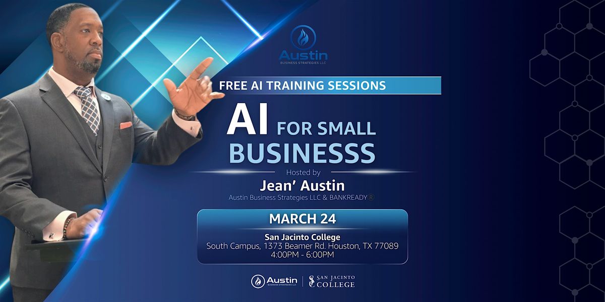 Artificial intelligence is transforming how businesses operate, communicate, and compete. Join Houston business strategist Jean’ Austin for a free AI training designed to help entrepreneurs understand how AI can improve marketing, customer engagement, and operational efficiency.