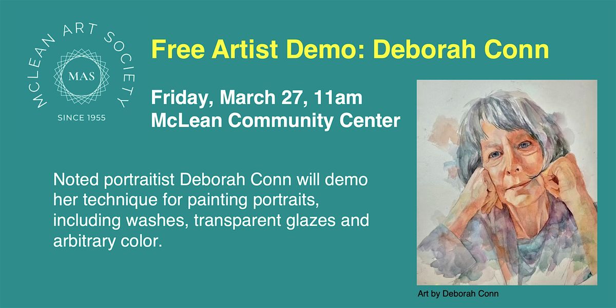 Noted portraitist Deborah Conn will demo her techniques for painting portraits. Free and open to the public.About this Event