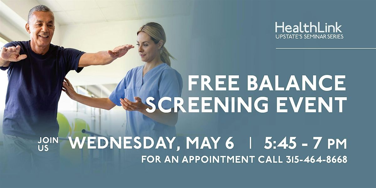 Join physical therapists and occupational therapists from Upstate Physical Medicine and Rehabilitation for a personalized screening of your balance and mobility. Learn how you perform compared to standards for adults and get tips and insights on optimal aging.