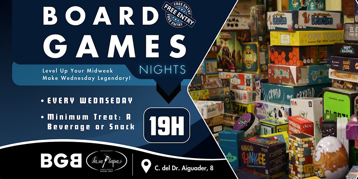 Únete cada miércoles 19:00–24:00 para disfrutar de juegos, comida, bebida y buena compañía.