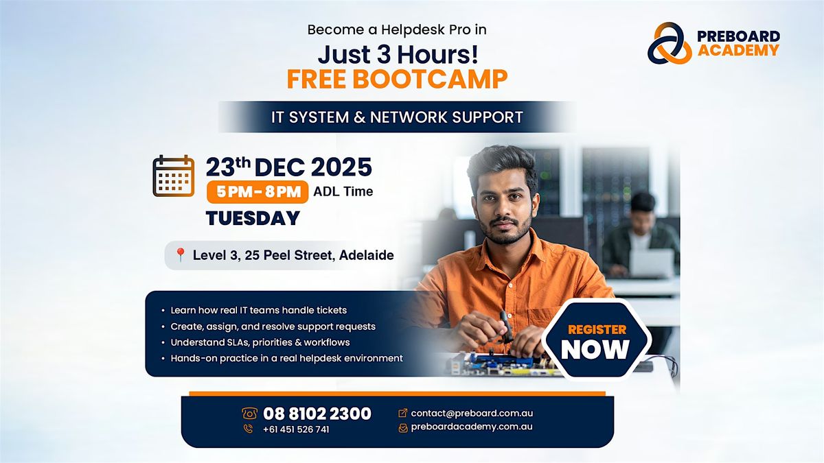 Jumpstart your IT career with our Free Bootcamp in Adelaide! Learn hands-on system & network support skills and become job-ready!