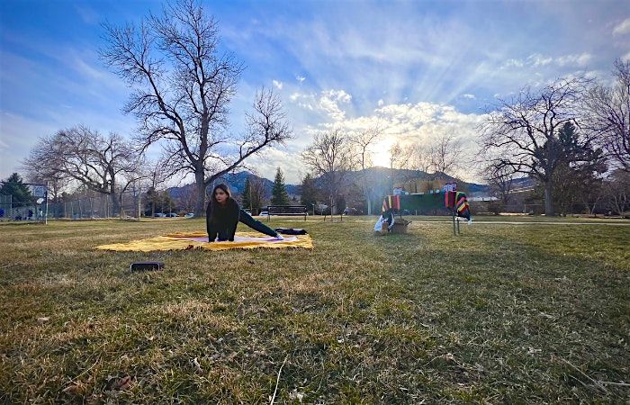 Join certified yoga instructor, Maria Rojas, for an all-levels outdoor yoga class close to the mountains in Martin Park, Boulder! Set to the sounds of nature, with the background soundtrack of ambient, soft music.
