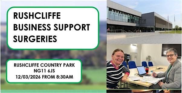 We’re inviting local businesses to a FREE Business support surgery on Thursday 12 March 2026. 8:30am to 3:00pm, at Rushcliffe Country Park. Whether you’re already in business or just about to start up, you have the opportunity to speak to Nottinghamshire County Council's Business Adviser, Dawn Fear.