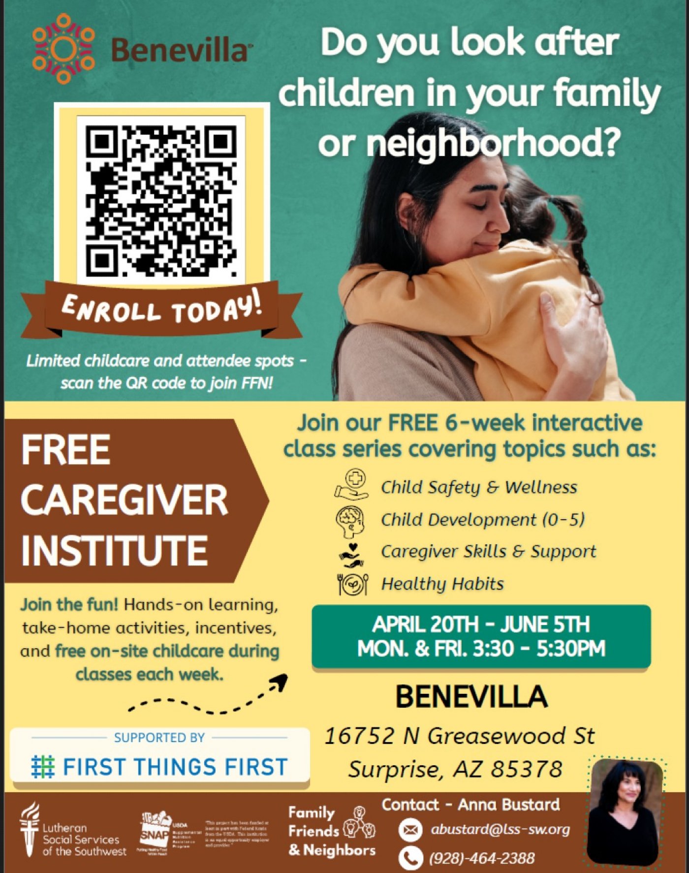 Join our FREE 6-week interactive class series covering topics such as child safety, child development, caregiver support, and healthy habits for caregivers of children 0-5 years old!