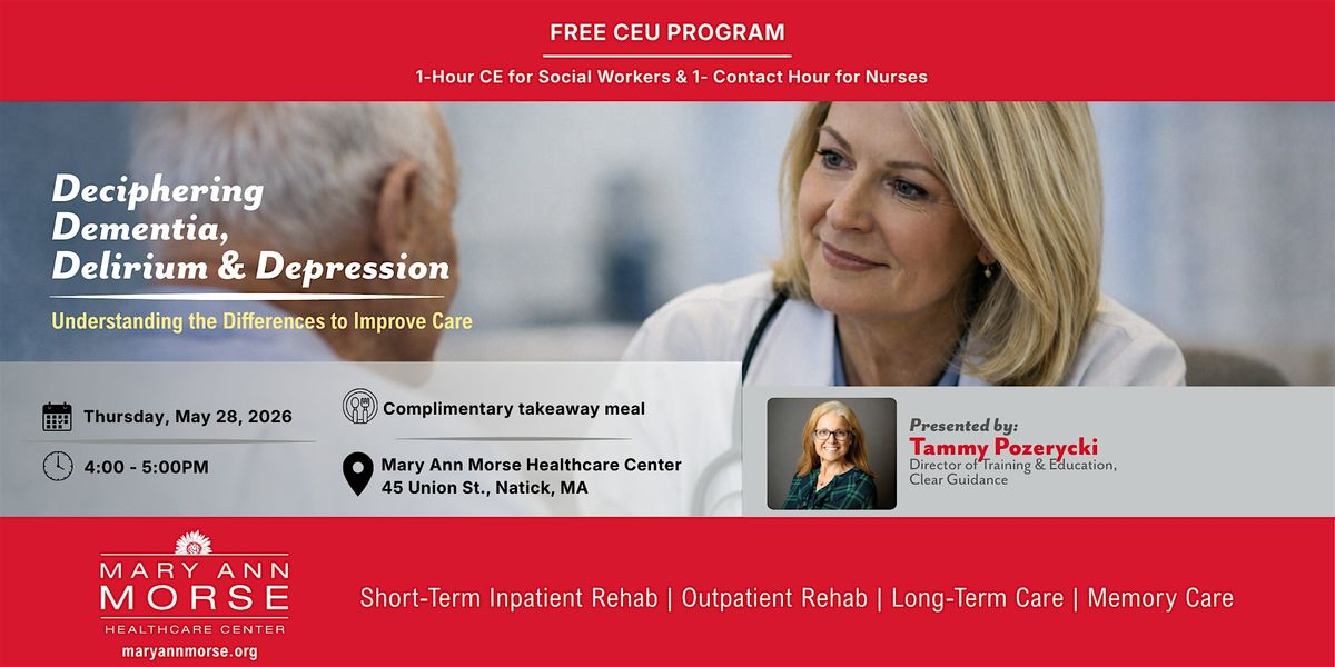 FREE CEU PROGRAM: Deciphering Dementia, Delirium & Depression