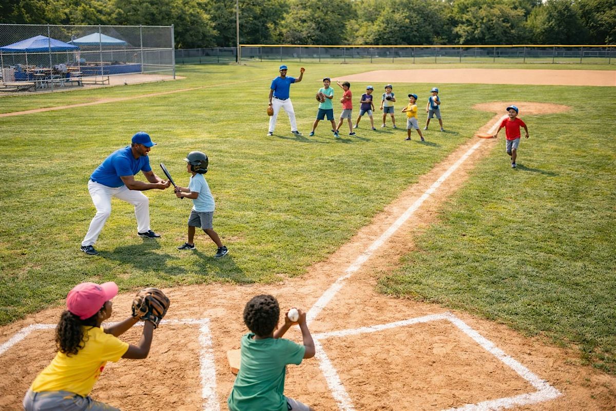 Hey kids! Join us for a fun-filled baseball camp where you’ll learn all the cool baseball skills in person. Whether you're a beginner or just wanna sharpen your game, this camp is perfect for you! Get ready to catch, hit, and run like a pro with awesome coaches and new friends. Don’t miss out on this exciting chance to play ball and have a blast!