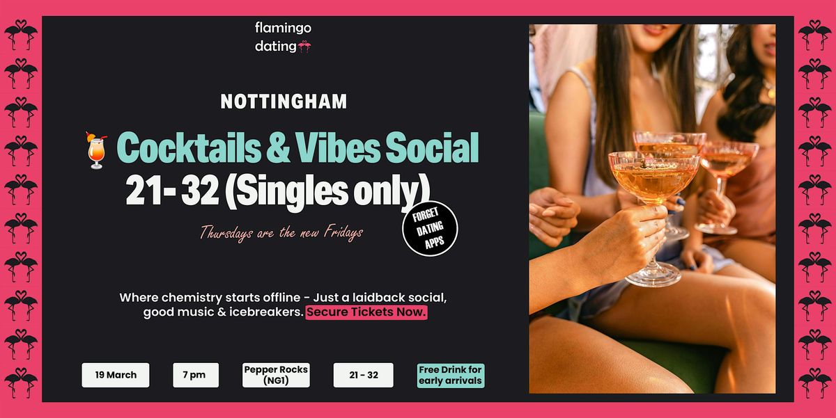 Bored of dating apps? Want a Free cocktail? Join us for a Singles Social. Meet like-minded people at Nottingham's coolest venue and hidden gem (📍 Pepper Rocks), in a lively, safe and welcoming space. Flamingo Dating encourages people to meet each other in real life, under our wing (no pun intended).