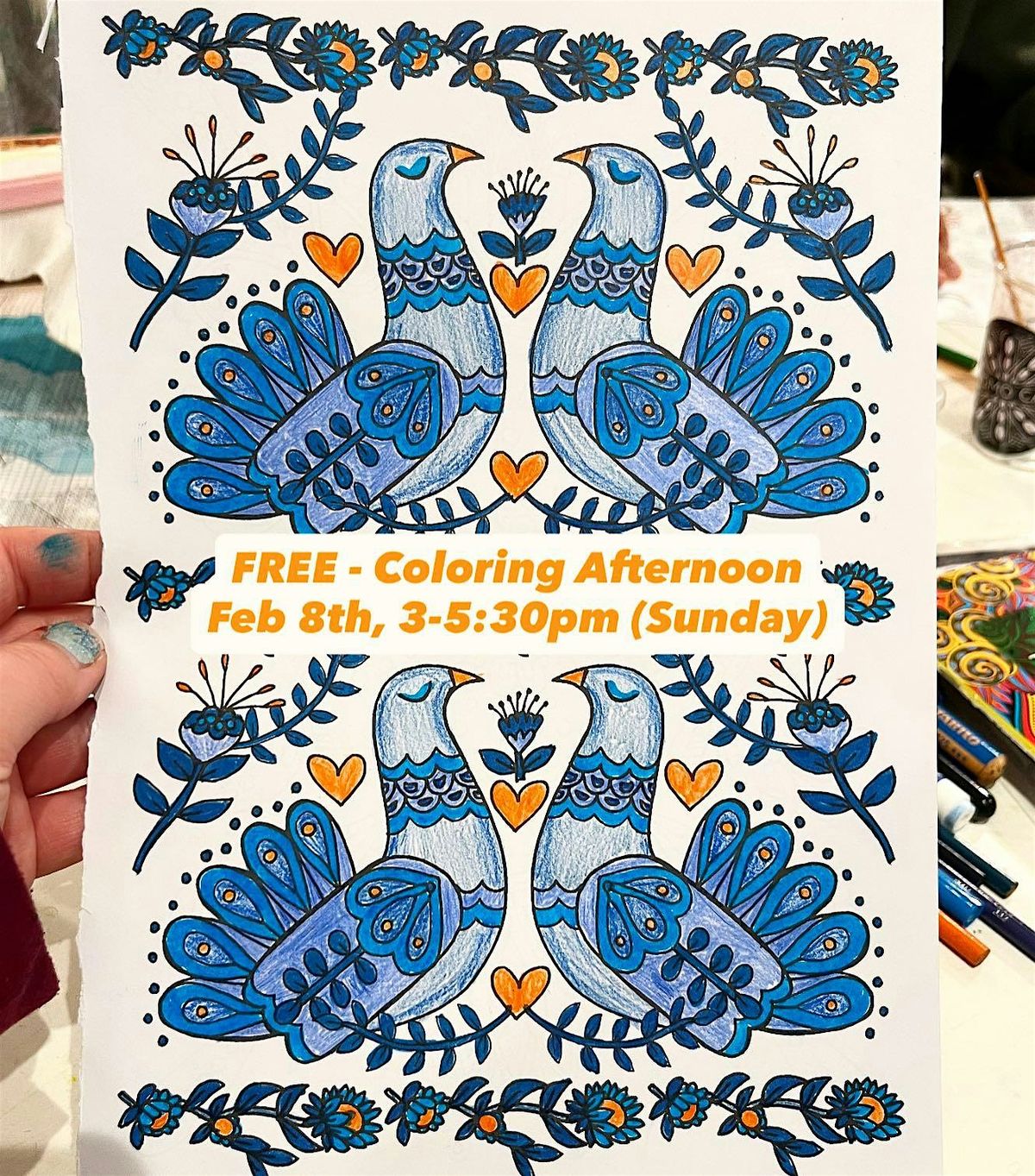 Free-to-attend community coloring time. We have plenty of coloring books, markers, pencils, and crayons for you to color to help you relax. Meet your neighbors and make some new friends, too!