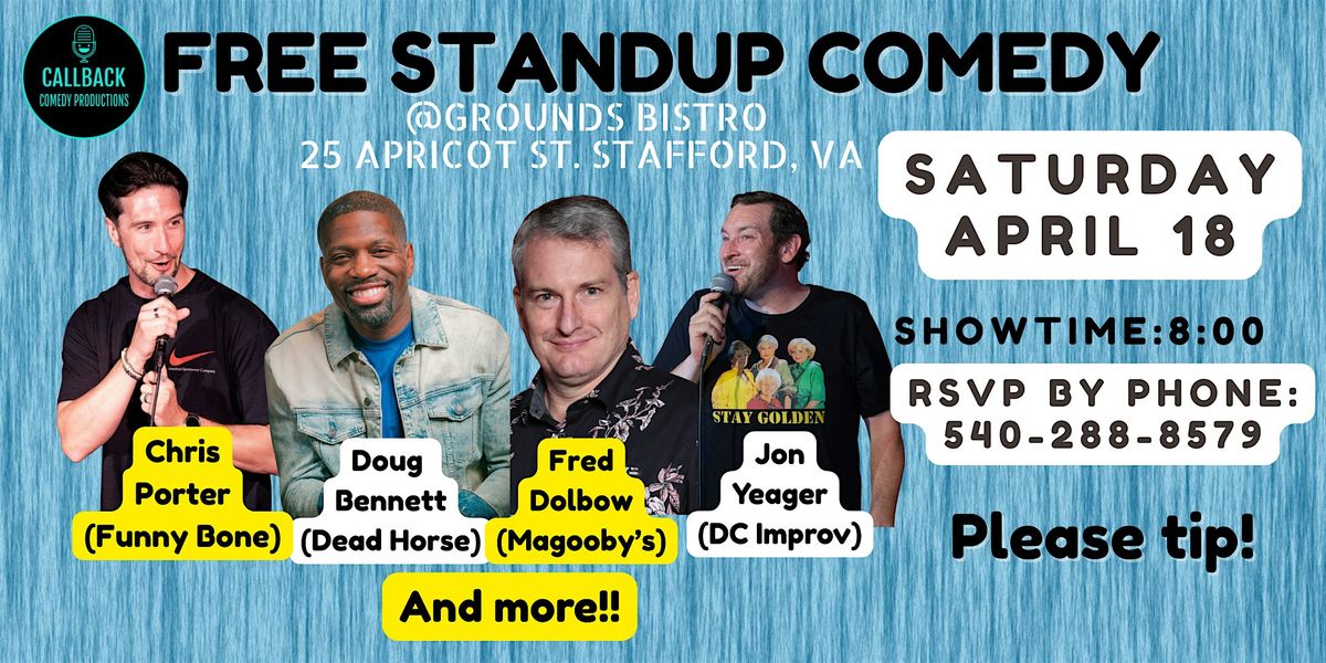 Join us at Grounds Bistro for Coffee, Cocktails, and free Comedy!Please Tip! You MUST RSVP at 540-288-8679