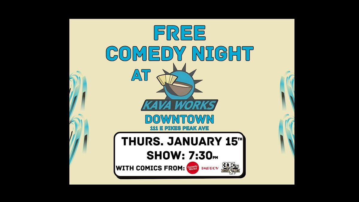 Free Comedy Night featuring some of Colorado's Best Local and Touring Comics Thursday January 15th at Kava Works Downtown! Show Starts at 7:30pm, but get there early for Tea, Smoothies, Kava, Kratom and ton's more to enjoy during our Free Show!