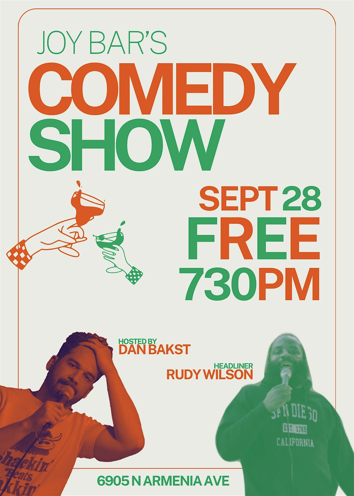 Come get festive and join host Dan Bakst (IONtv, Smosh) and his funny pals SUNDAY APRIL 19th at 730PM at Joy Bar's FREE comedy night! We have comics that have been featured on K*ll Tony, Netflix and more! The "King of Crowd Work" Rudy Wilson closes out the show! Who else will drop by? Come find out!