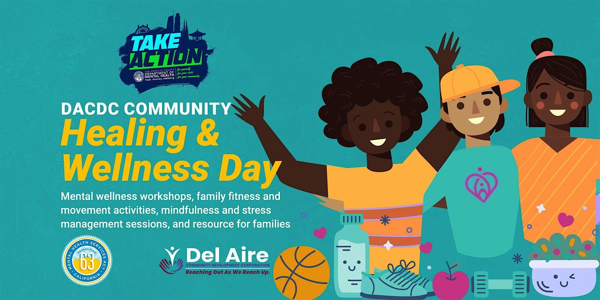 This event is proudly supported by the Take Action LA initiative, made possible through funding from the California Mental Health Services Authority (CalMHSA) and the Los Angeles County Department of Mental Health (LACDMH). These resources are provided via the Mental Health Services Act (MHSA) for Prevention and Early Intervention. Del Aire Community Development Corporation (DACDC) operates under the Take Action LA framework to ensure all programming, activities, and resources remain free of charge to the community.